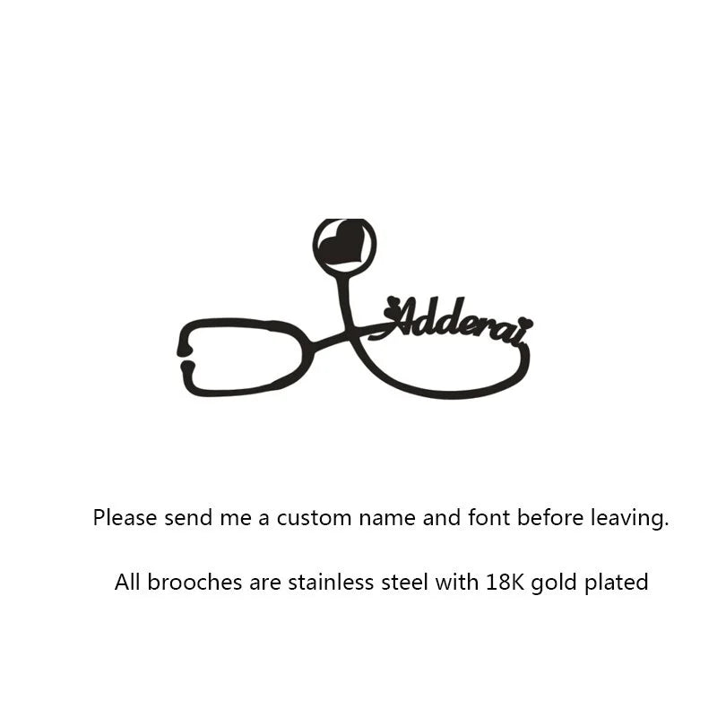 Custom Heart Stethoscope Name Brooch Pin For Healthcare Workers Personalized Doctor Nurse Gift