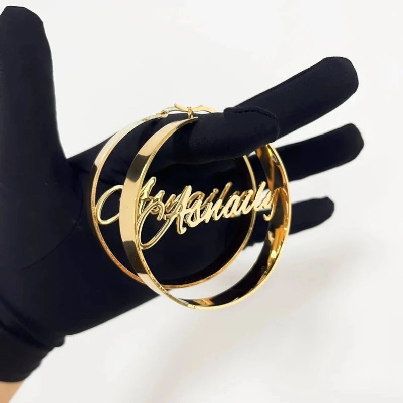 Get ready to be the star of the show with Pandora J's personalized name metal earrings! Made with high-quality stainless steel, these drop earrings come in a variety of sizes from 30-100mm. Don't miss out on our Eye Catching and fun designs, perfect for all occasions. Customize these earrings with your own name or gift them to your favorite people, from friends and family to lovers and more. And with 18K gold plating in silver, gold, or rose gold, you'll shine like never before. Order now and get ready to charm everyone from your significant other to your wedding party!